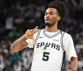 马刺后卫卡斯尔季后赛首秀表现抢眼,目前得到16分6板7助攻。
